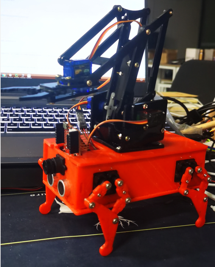 机器狗“瓦无力”--是电子与通信工程系21017班刚建飞作品,这只机器狗有3D打印的“躯体”+有趣的“灵魂”,行动力强还会聊天,真的很萌喔,等他“长大”的那天应该能帮我们拿快递吧。