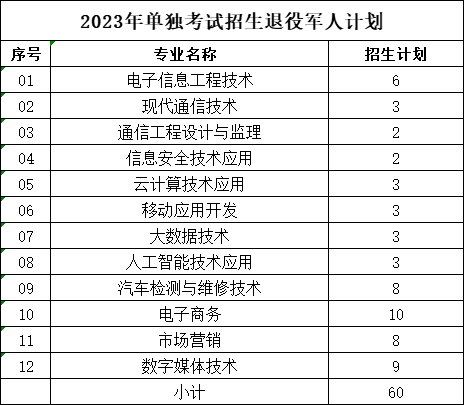 单独考试招生计划