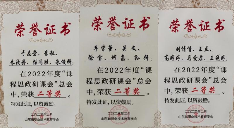 近日,山东省职业技术教育学会2022年度课程思政研课总会课程思政比赛结果正式公布,我校由于志芳等教师组成的“网络营销”课程团队、由车学董等教师组成的“图像处理技术”课程团队、由刘倩倩等教师组成的“建筑构造与识图”课程团队在本次比赛中均荣获二等奖。