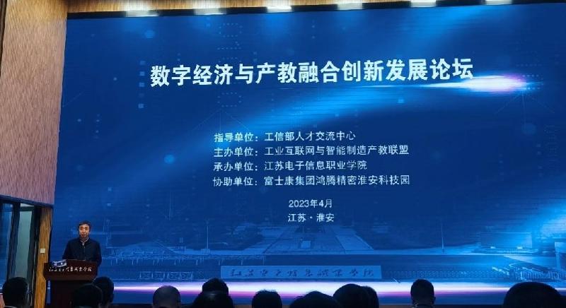 4月6日至7日,工业互联网与智能制造产教联盟一届二次会议暨数字经济与产教融合创新发展论坛在江苏电子信息职业学院举行,工信部人才交流中心副主任色云峰、江苏省工信厅副厅长徐军、淮安市政协副主席王苏君等领导出席,全体理事单位代表参加。产教联盟会议由常州信息职业技术学院校长眭碧霞主持。我校作为副理事长单位参加会议。