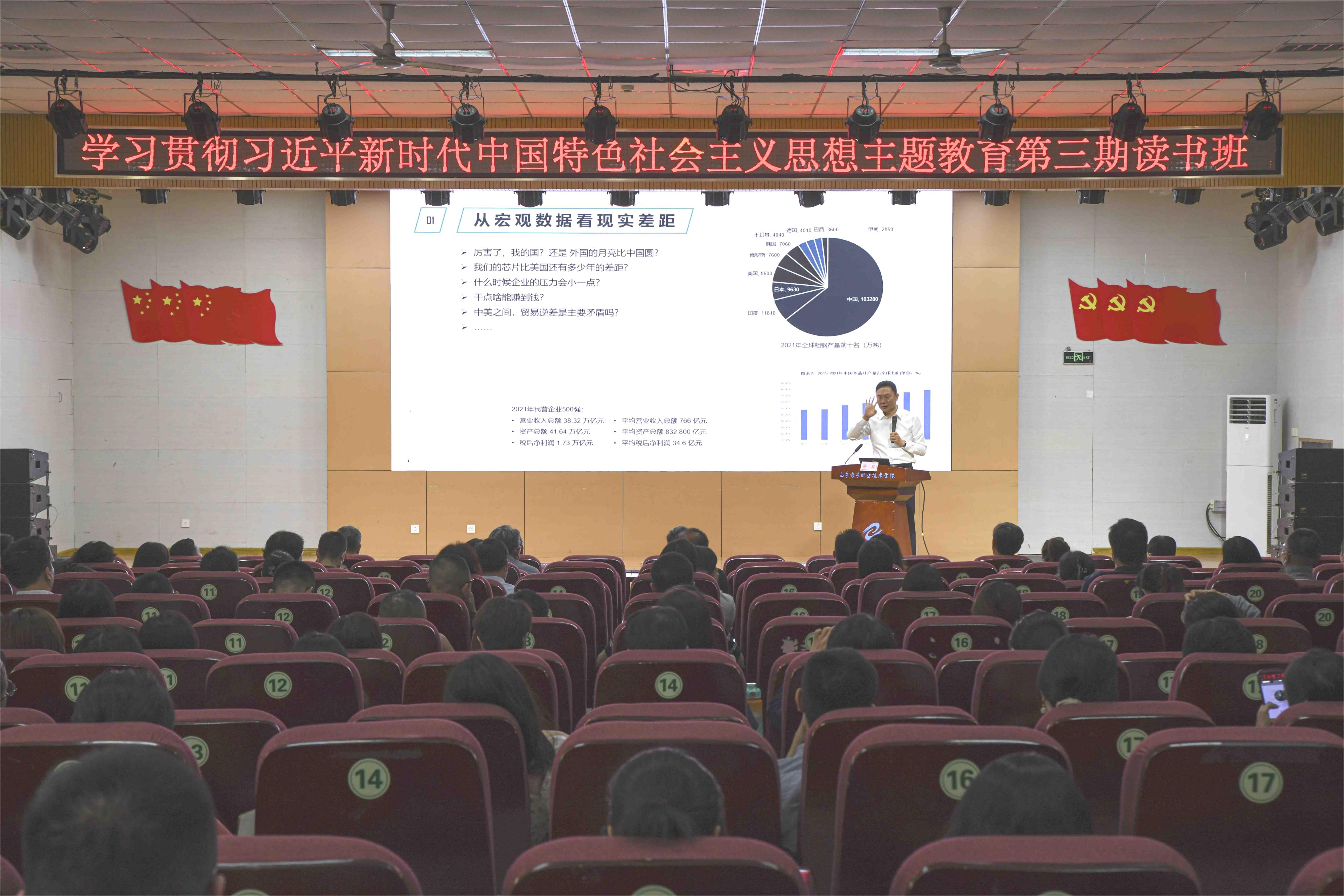 根据学校学习贯彻习近平新时代中国特色社会主义思想主题教育第三期读书班安排,5月23日下午,学校邀请广东院士联合会科技成果转化中心主任、深圳第三代半导体研究院副院长、深圳市山东商会名誉会长徐群作辅导报告。党委书记郑三、院长张训华和学校其他领导班子成员出席会议,副科级以上干部及教师代表参加报告会,会议由党委副书记迟会礼主持。