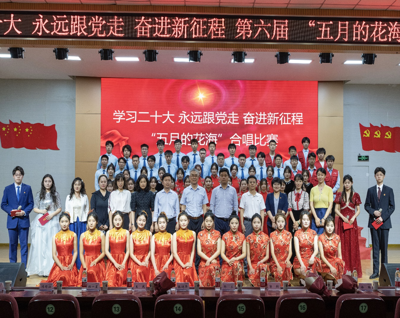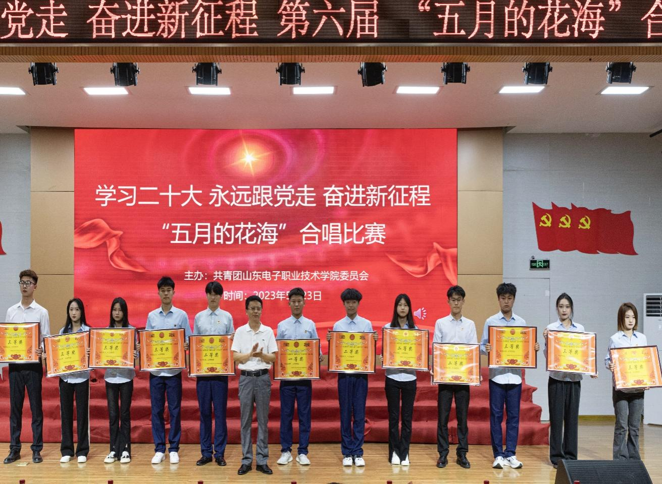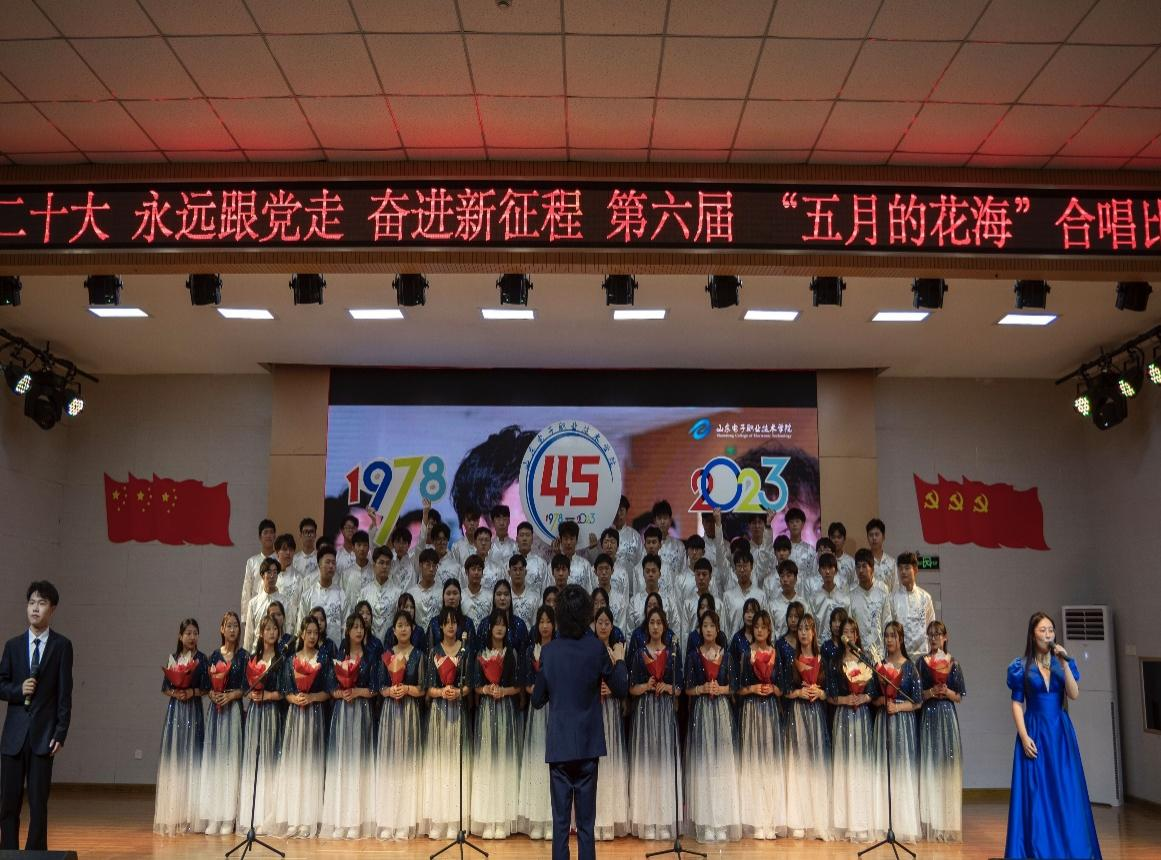 为进一步丰富大学生校园文化生活,展现当代大学生积极向上的精神风貌,5月23日,学校团委举办以“学习二十大 永远跟党走 奋进新征程”为主题的“五月的花海”合唱比赛。山东省省直机关团工委副书记郭翔、章丘区团委书记王越、山东传媒职业学院团委书记徐梅、济南工程职业技术学院团委书记刘晓平等莅临比赛现场,学校党委书记郑三、院长张训华等领导班子成员,相关职能部门负责人以及师生代表参与此次活动。
