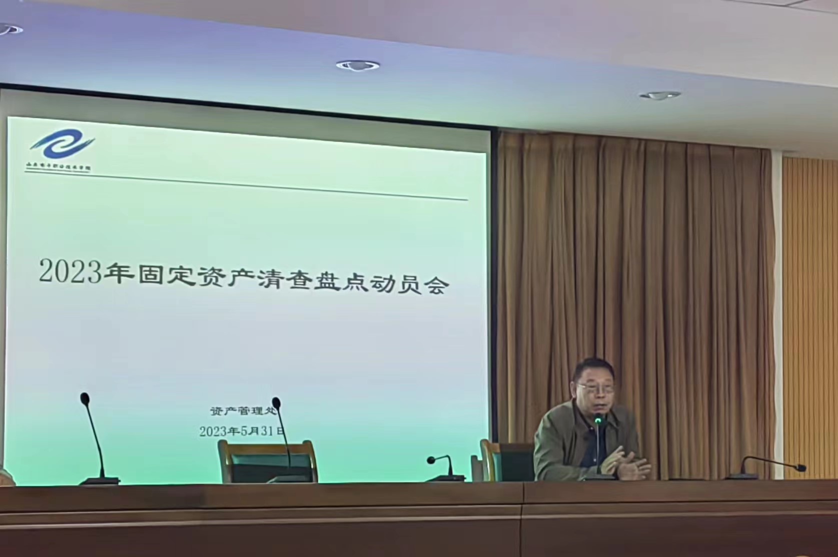 2023年5月31日上午,山东电子职业技术学院组织召开了固定资产清查盘点动员大会,部署固定资产清查盘点工作。院长张训华到会作了重要讲话,各系部、各部门主管资产管理工作的领导和资产管理员参加会议,会议特邀这次固定资产清查盘点的合作方——山东国子软件股份有限公司的代表参会。