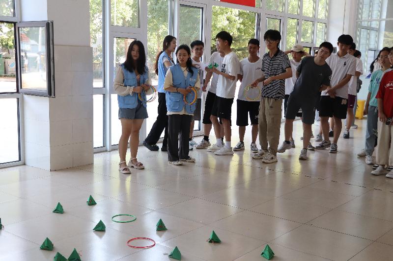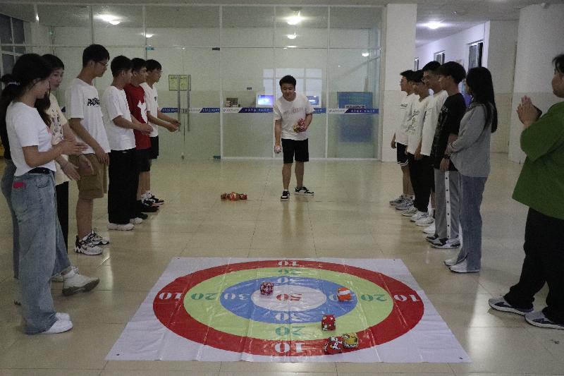学生分成6组,每组10人,依次将粽子沙包丢进墙上挂置的“五毒符”纸板内。