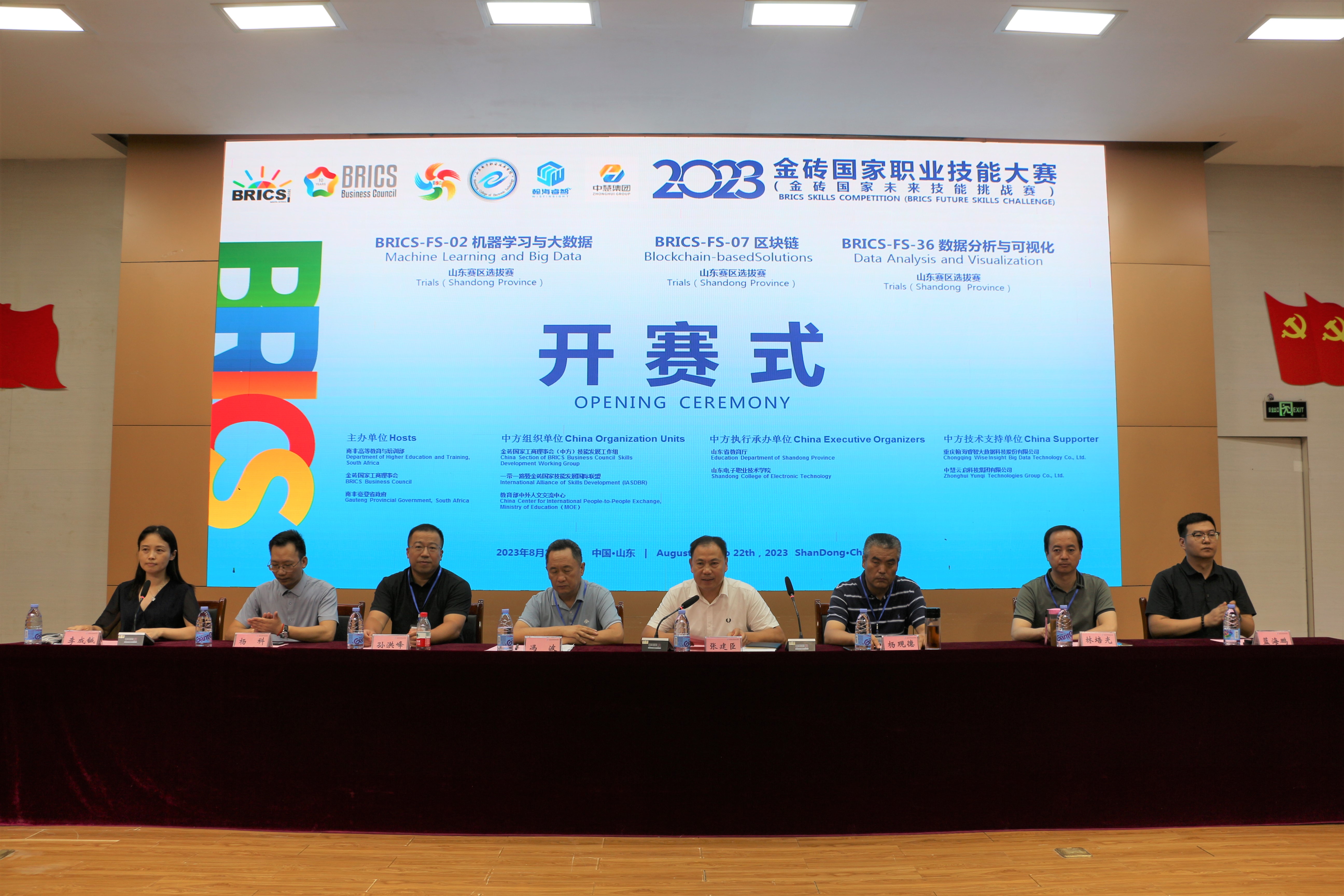 金砖国家职业技能大赛(金砖国家未来技能挑战赛)机器学习与大数据、区块链、数据分析与可视化三个赛项山东省选拔赛于2023年8月22日在我校成功举办。来自全省29支队伍参加了选拔赛,通过激烈角逐,机器学习与大数据赛项山东电子职业技术学院、济南工程职业技术学院代表队,区块链赛项山东电子职业技术学院、德州职业技术学院代表队,数据分析与可视化赛项山东电子职业技术学院、临沂科技职业学院代表队进入决赛,将代表山东省参加接下来举办的中国分赛区国际总决赛。