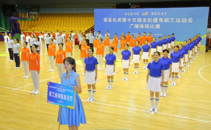 8月29日下午,省直机关“奋进新时代 健康向未来”第十五届全民健身职工运动会广播体操比赛在山东省体育中心体育馆举行,我校女教职工代表省工信厅参加比赛,喜获二等奖好成绩。