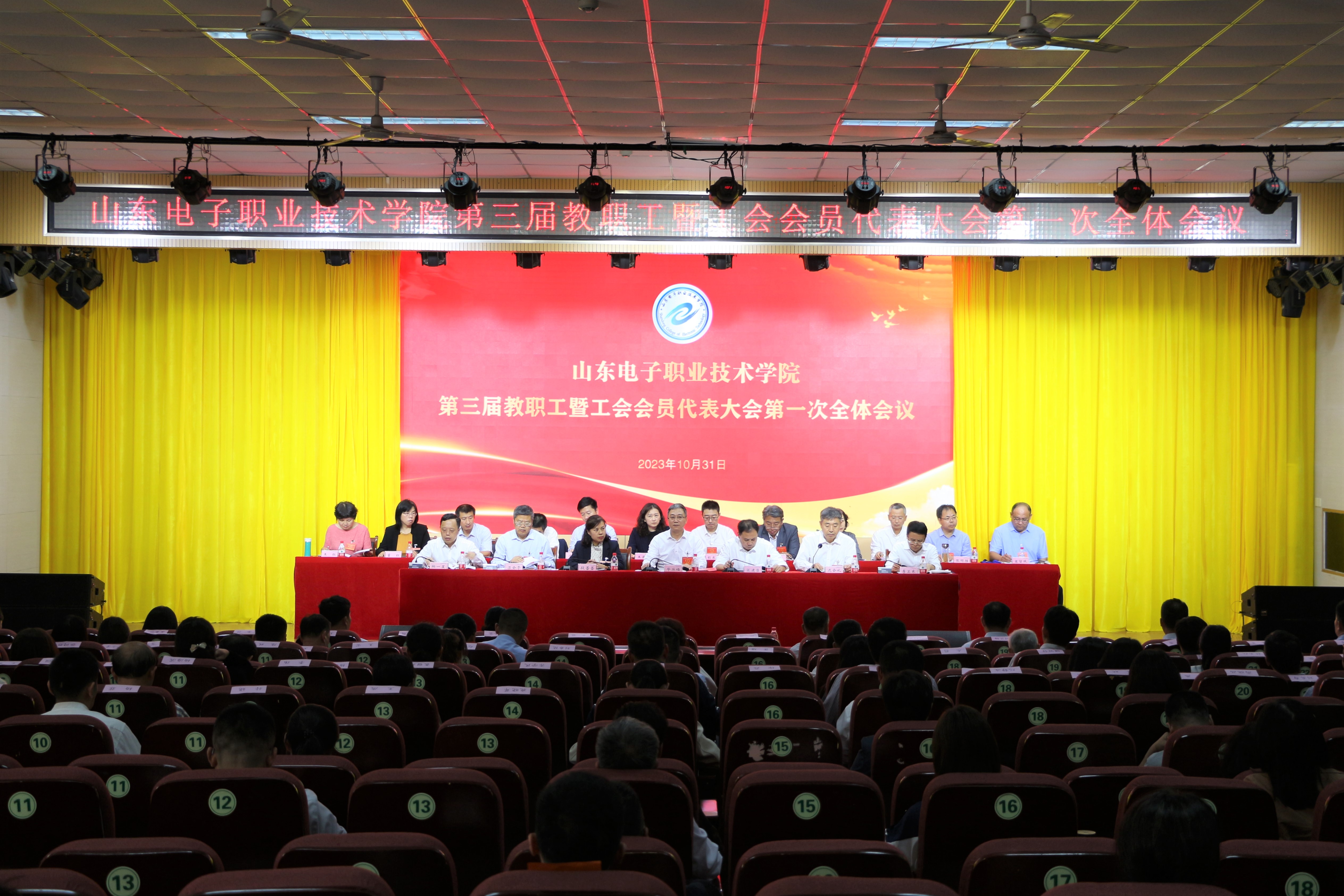 10月31日,山东电子职业技术学院第三届教职工暨工会会员代表大会第一次全体会议在学术报告厅隆重召开。会议在雄壮的国歌声中拉开帷幕。在主席台就座的有:山东省工业和信息化厅机关党委三级调研员、厅直属机关工会委员段蕾蕾,大会主席团成员毕丛福、张建臣、迟会礼、梁会亭、李卫东、柏一星、王毅东、冯同江、王亚男、刘勇、袁留政、王新新、刘学、王红、李敏、董红、于宝、张欣、张同胜。大会由迟会礼主持。