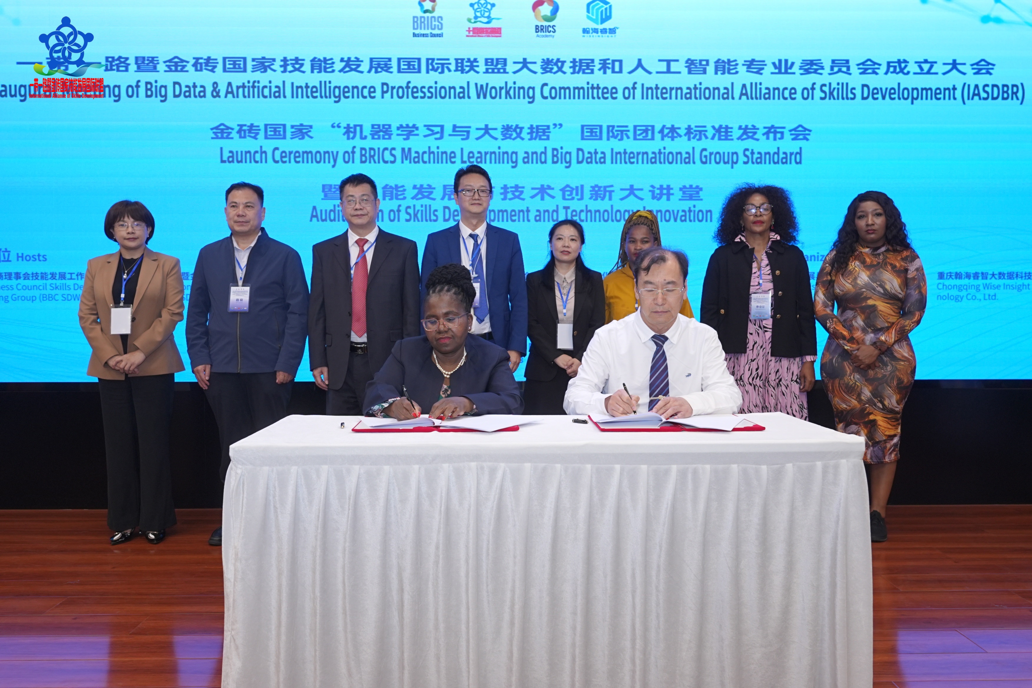 2023年11月12日,一带一路暨金砖国家技能发展国际联盟大数据和人工智能专业委员会成立大会、金砖国家“机器学习与大数据”国际团体标准发布会暨技能发展与技术大讲堂在厦门召开。一带一路暨金砖国家技能发展国际联盟(以下简称“联盟”)是 2017 年金砖国家最高领导人会晤筹备委员会认可的、在中华人民共和国外交部备案的、金砖国家工商理事会批准的重要成果设计,联盟的建立得到金砖五国最高领导人的充分肯定。根据联盟工作发展需要,成立大数据和人工智能专业委员会,旨在为领域内专家们提供一个共同探讨、研究和解决大数据和人工智能领域重要问题和挑战的平台,通过定期举行学术会议、研讨会和论坛等形式的活动,分享最新的研究成果、经验和技术进展,促进学术界和产业界之间的合作与交流。