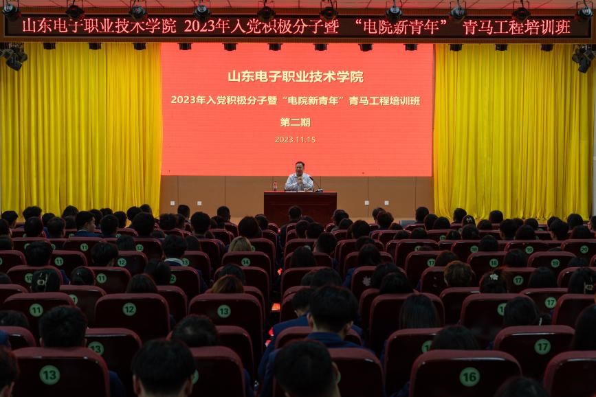 11月15日,学校组织开展2023年度入党积极分子暨“电院新青年”青马工程培训班第二讲,院长张建臣做了《砥砺青春之志,谱写盛世华章》的主题讲座。