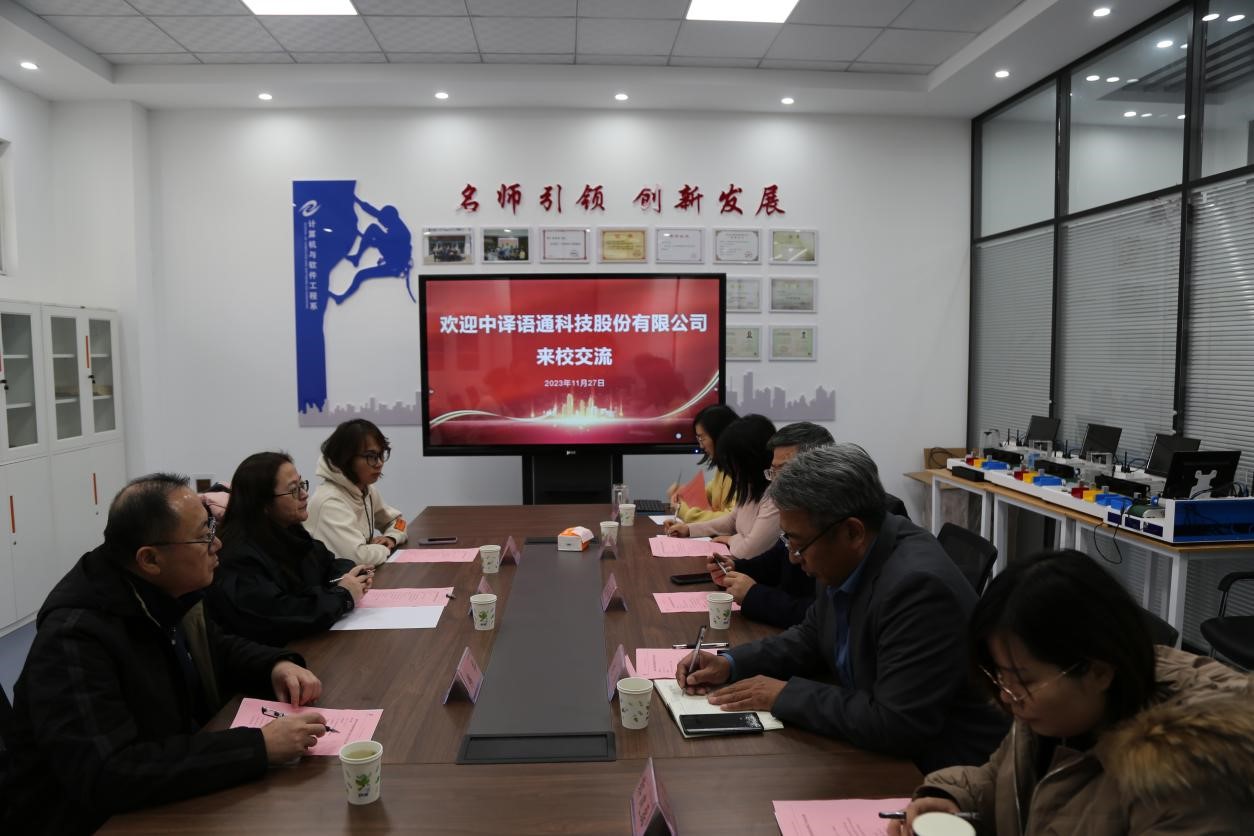 11月27日下午,中译语通科技股份有限公司副总裁张晓丹一行3人到我校交流访问,副院长梁会亭与计算机与软件工程系相关人员参与交流研讨。