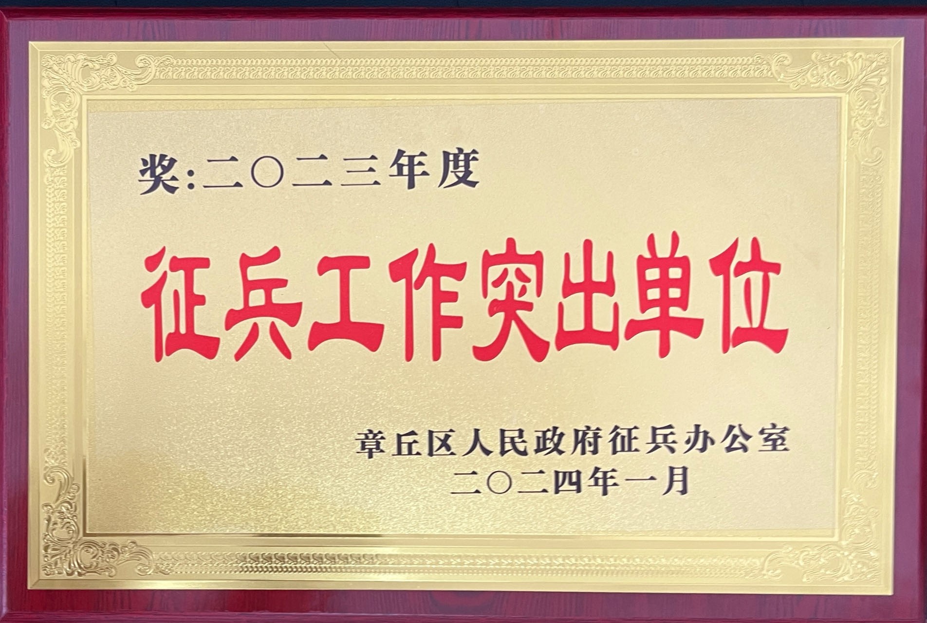 1月11日下午,在章丘区人民政府征兵办公室召开的2023 年度全区征兵工作会议上,我校荣获章丘区2023年度“征兵工作突出单位”荣誉称号。