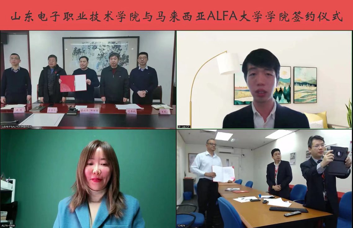 抢抓新机遇,共创新未来。为拓展学校国际化办学项目,加速推进“班·墨学院”建设,1月16日,我校与马来西亚ALFA大学举行线上签约仪式。马来西亚ALFA大学校长Shaharuddin,国际处主任Gina,我校张建臣院长等学校领导班子成员参加仪式。