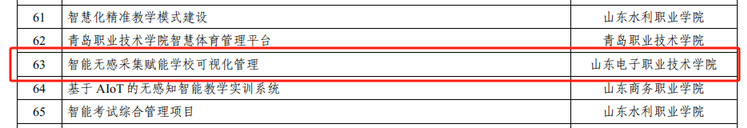 近日,山东省教育厅下发《关于公布“无感知数据采集”示范项目名单的通知》(鲁教科函〔2024〕6号),山东电子职业技术学院组织申报的“智能无感采集赋能学校可视化管理”成功入选“无感知数据采集”省级示范项目。