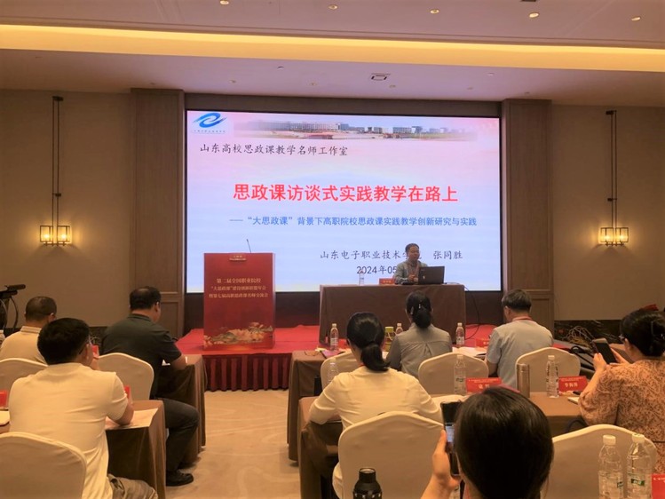 张同胜在院长名师论坛上就职业院校“大思政课”实践教学创新主题展开汇报,介绍了我校思政课访谈式实践教学的建设情况和成效。在学校党委领导下,我校思政部认真落实习近平总书记提出的八个“相统一”要求,推动思政课教学改革创新,推行访谈式实践教学。十年来,思政部把思政小课堂同社会大课堂结合起来,对学校优秀教师、优秀校友、社会人士等进行师友访谈,编撰访谈录《榜样的力量》;充分发掘社会资源,建立三涧溪村、章丘工业党史馆、校友企业—金威刻激光科技股份有限公司等“思政教育教学实践基地”,聘请三涧溪村党委书记高淑贞等“思政教育导师”,积极开展思政课实践教学活动;以校村合作共建为突破口,围绕“走、学、研、思、行”,打造“行走的党建”,将思政课与乡村振兴、党的建设紧密融合,促进“大思政课”建设落实落地。