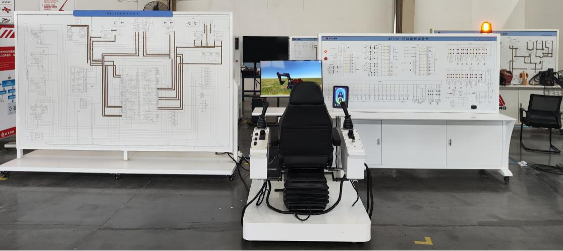 该实训装置由液压演示实验台、电气检测实验台与操作模拟实验台三部分构成,高度还原ME130挖掘机真实作业场景,具备操作便捷、安全可靠、便于维护等特点,为相关企业人才培养提供了有效实训平台。