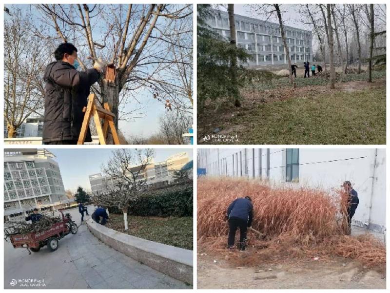 做好绿植养护灌溉工作,推进绿色生态校园建设。放假前,联系物业深度清理校园卫生死角,并制定寒假期间校园绿化工作计划。在寒假期间安排人员进行冬季植被灌溉,并对落叶乔木进行修剪,去除病虫枝和徒长枝,清理落叶,总务处实行假期轮班制,工作人员及时到岗督促检查落实,确保校园绿植长势良好,推进绿色生态校园建设。