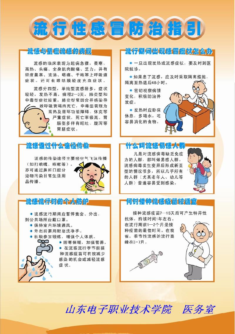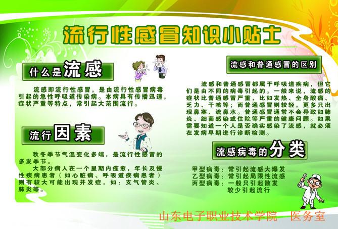 流行性感冒,简称流感,是由流感病毒引起的急性呼吸道传染病。最常见的流感起病突然,畏寒、寒战,高热,体温可达39~40℃,伴头痛、全身肌肉关节酸痛、极度乏力、食欲减退等全身症状,常有咽喉痛、干咳,可有鼻塞、流涕等。如无并发症,多于发病3~4天后症状好转,但咳嗽、体力恢复常需1~2周。轻症者如普通感冒,症状轻,2~3天可恢复。