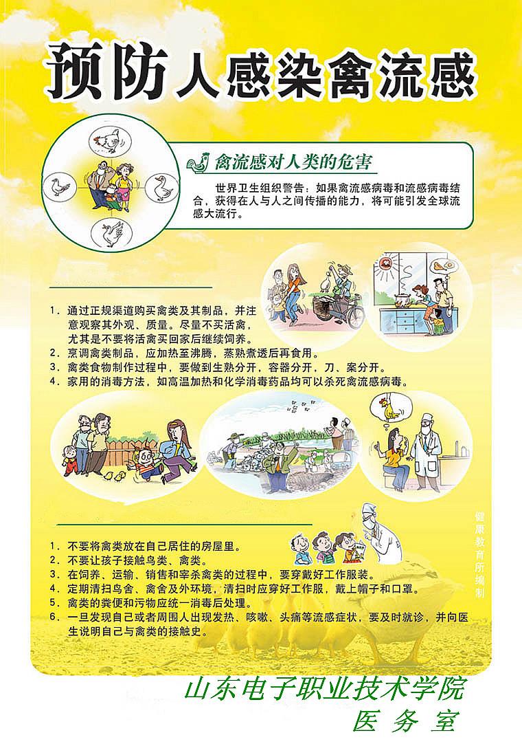 近期,我国发生的人感染H7N9禽 流感病毒,是全球首次发现的新亚型流感病毒,感染病例也是首次确定。本病的感染来源、人际间的传播能力、传播途径、疾病感染谱尚不清楚。对该病毒及其感染 病例的临床特征认识还非常有限,该病毒感染之后能否引起轻型病例或其他临床表现尚无资料,尚没有证据表明可以人传人。根据既往对禽流感病毒的了解,可知禽 流感病毒对外界环境的抵抗力不强,对高温、紫外线敏感,病毒在65℃加热30分钟或煮沸(100℃)2分钟以上可灭活,病毒在较低温度粪便中可存活1周,在4℃水中可存活1个月,对酸性环境有一定抵抗力。
