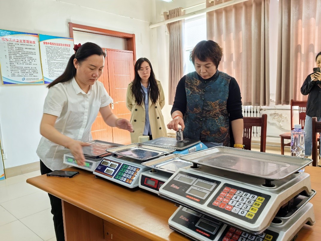 济南市章丘区综合检验检测中心致力于提升服务效能,解决服务群众的“最后一公里”问题,5月8日,该中心副主任巩磊、计量检定部主任高苗苗率领专家团队亲临我校,以志愿服务的形式,对我校食堂、超市等驻校单位的计量器具进行了全面细致的检测,总务处徐磊、孙强、杨海滨等相关部门人员全程参与,共同确保了检测工作的顺利进行。