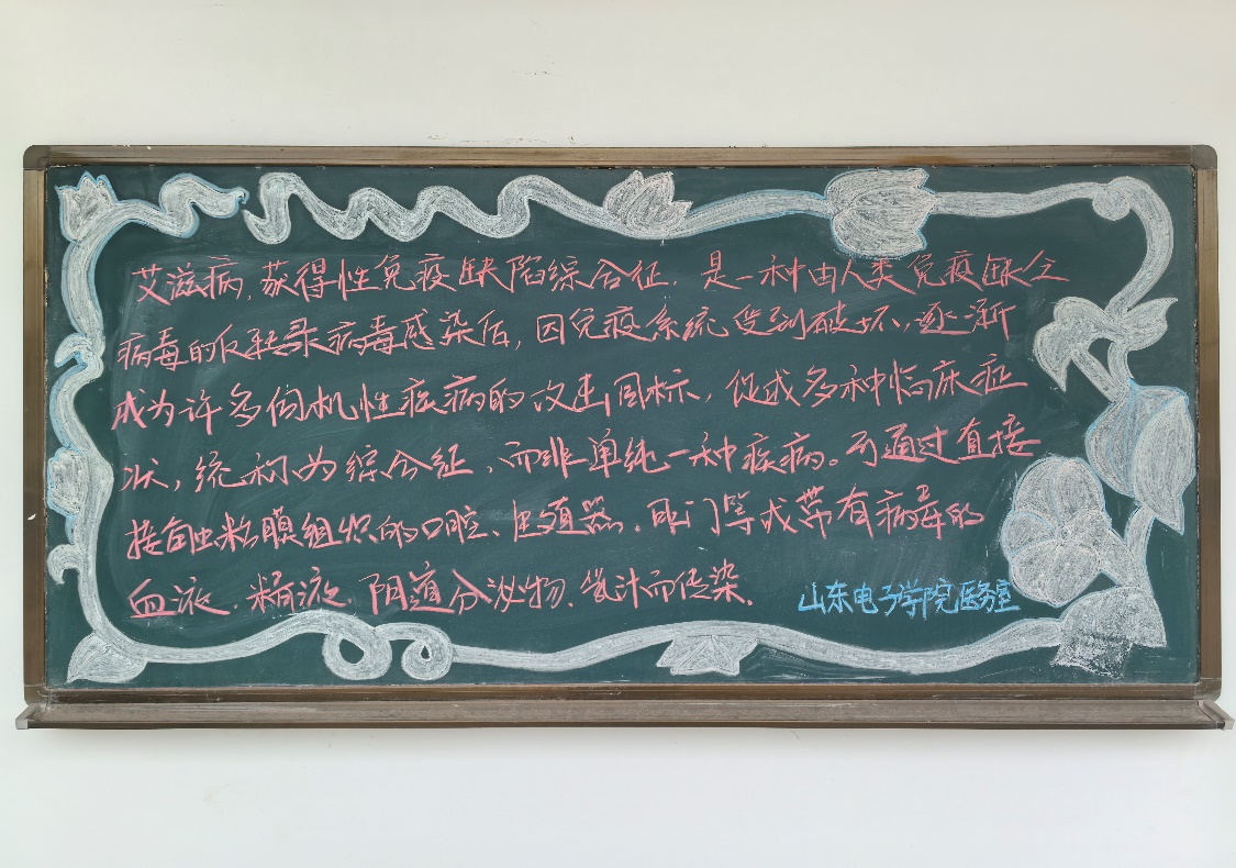 我校医务室围绕这个主题在校园内开展一系列宣传活动,希望通过开展世界艾滋病日宣传活动,向大学生进行艾滋病预防知识宣传,使更多人了解艾滋病,正视艾滋病,了解艾滋病的传播途径、发病机理及症状,以此更好地遏制艾滋病的传播和蔓延;同时从自身做起,洁身自爱,杜绝艾滋病在学校传播的一切可能。提高在学大学生的防艾知识水平。增强防范意识,降低感染风险。理解、关爱和不歧视艾滋病患者,呼唤全社会关注艾滋病的防治问题,为艾滋病患者营造良好的社会和生活环境,消除人们对艾滋病患者的歧视和偏见,建立一个和谐关爱的社会。