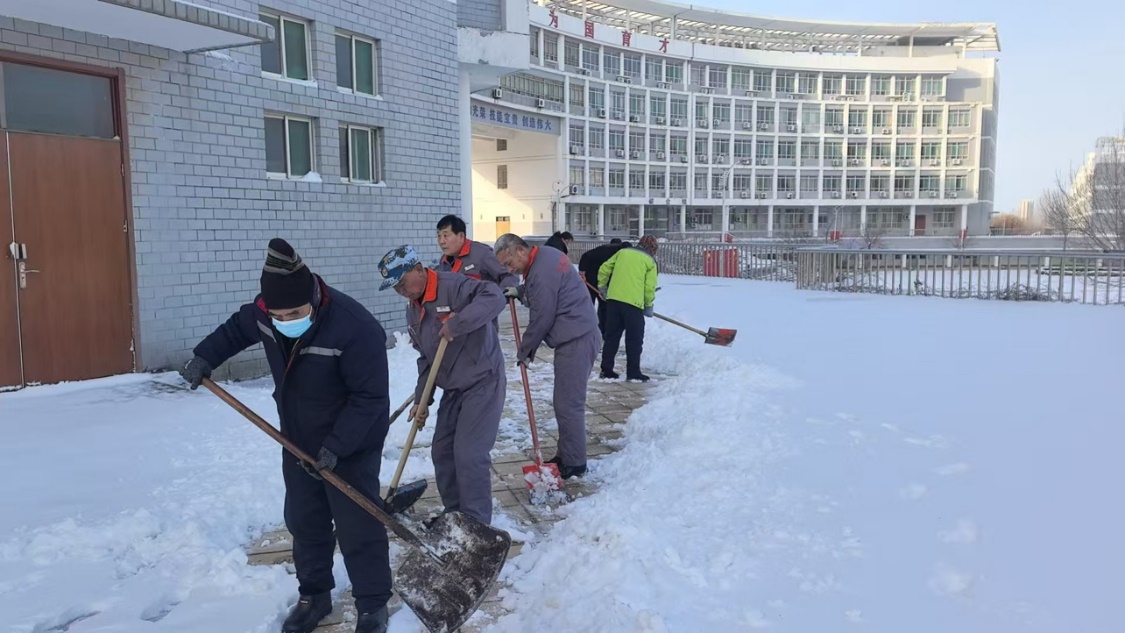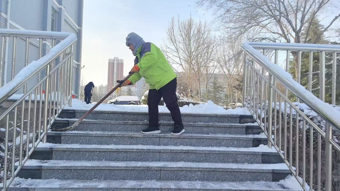 随着雪花纷飞,工作人员始终坚守岗位,对校园内的必经之路进行不间断清理,确保教学区道路始终保持畅通无阻。让师生们在雪景中也能安心前行。他们的辛勤耕耘与无私奉献,不仅构筑起一道坚实的校园安全防线,更在银装素裹的校园中增添了一份温馨与和谐。