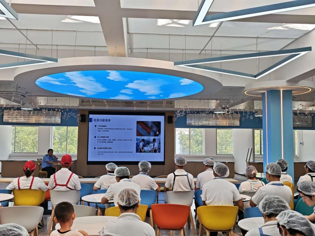 为提升校园餐饮服务水平,加强食品安全管理能力,8月22日上午,学校总务处特邀章丘区市场监管局餐饮科科长邢介帅及科室工作人员来校,为餐饮从业人员举办专题培训会。总务处相关负责人及工作人员、各餐饮公司负责人以及一线员工共计100余人参加了培训。