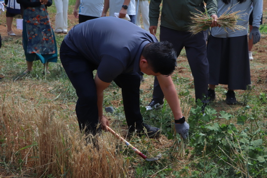 活动现场,全体人员分成若干小组,有序开展小麦收割工作。在麦田里,党员率先示范,熟练地挥舞着镰刀,将一捆捆金黄的小麦整齐地摆放在田间。学生入党积极分子们虽然动作稍显生疏,但在老师们的耐心指导下,很快掌握了收割技巧,纷纷投入到劳动中。大家相互协作,干劲十足,田间地头洋溢着劳动的喜悦。