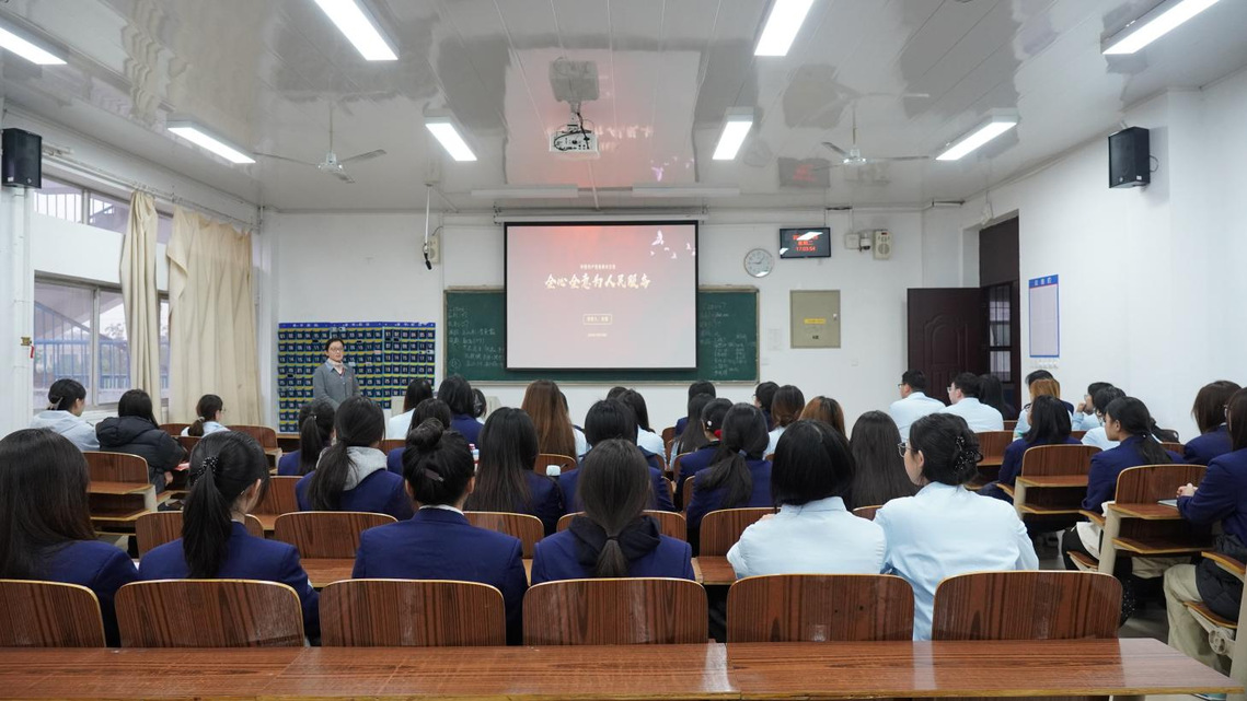 党课以“为人民服务”的“历史渊源—内涵意义—青春践行”为主线展开。开篇回溯张思德平凡而伟大的一生,阐释“为人民服务”从提出到1945年中共七大正式写入党章的光辉历程,帮助同学们厘清党的根本宗旨的历史脉络与理论逻辑。