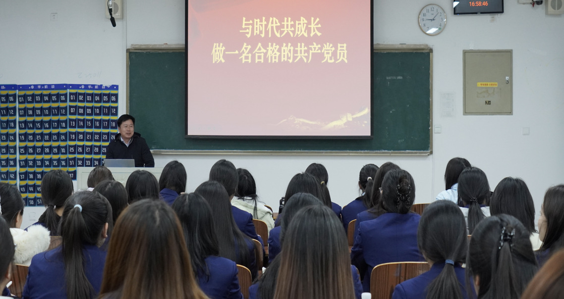 2025年11月10日,财经金融系学生党支部开展《与时代共成长,做一名合格的共产党员》入党积极分子党课培训,智能制造工程系党总支书记冯同江主讲。
